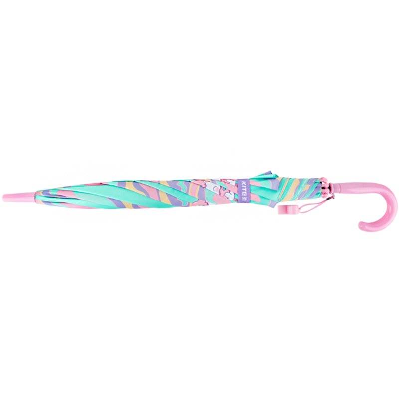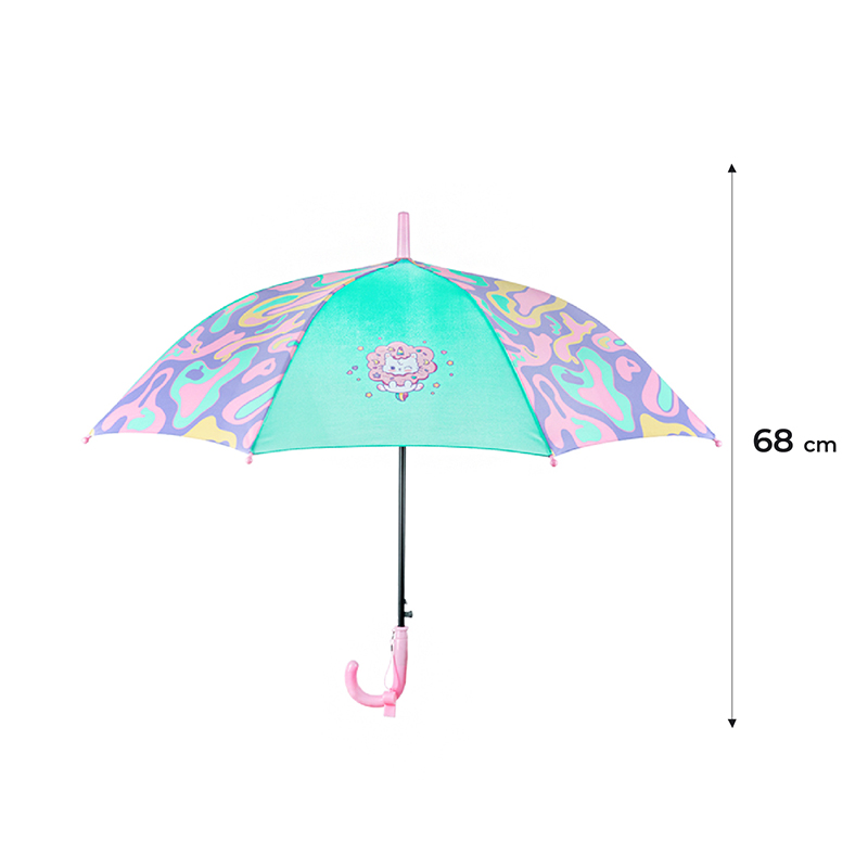 Kids umbrella Kite K24-2001 is stylish and reliable. An indispensable accessory for walks in rainy and snowy weather. A colorful design with a rich print will lift your mood even on a gloomy day. The dome is made of dense water-repellent polyester. The frame of 8 reinforced carbon spokes is durable and resistant to wind. The plastic hook handle is comfortable for children's hands, fits perfectly in the hand. To prevent the child from being pricked, the spokes are protected by round plastic tips; for practicality - point-stitched to the fabric.